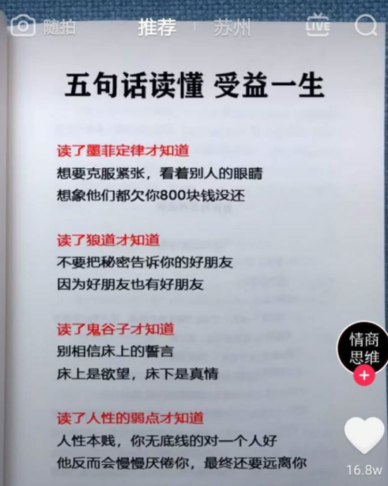 抖音的帶貨能力是毋庸置疑的,但大部分人刷抖音都是為了消遣娛樂(lè),并不購(gòu)物,如何增加轉(zhuǎn)化率呢?經(jīng)過(guò)測(cè)試,發(fā)現(xiàn)好物種草推薦類(lèi)內(nèi)容易成交,因?yàn)檫@樣能直接告訴粉絲:我就是來(lái)賣(mài)的,你快來(lái)買(mǎi)!不用藏著掖著。