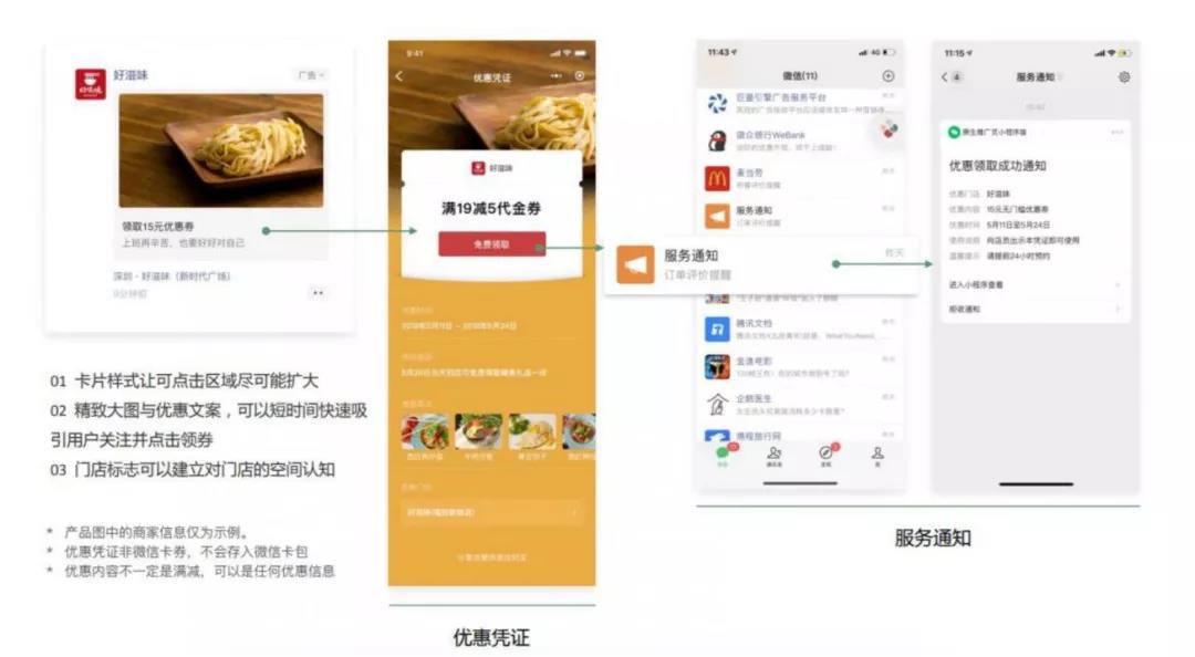 此外,借助文案優(yōu)惠描述、門(mén)店定位顯示,多樣卡券派發(fā),門(mén)店可加強(qiáng)用戶(hù)到店消費(fèi)的行為驅(qū)動(dòng)杠桿。