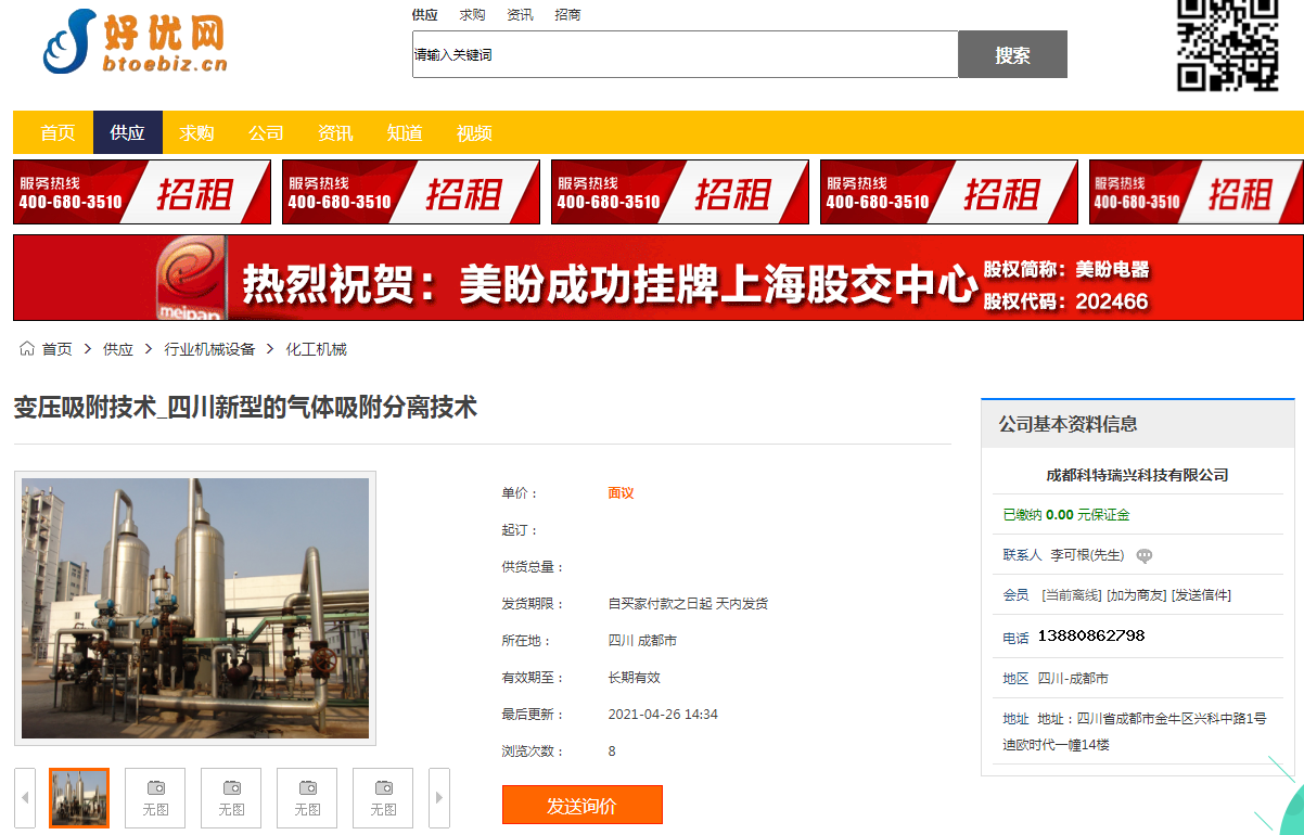 投放824條商盟,成都氯乙烯專用吸附劑、2000方甲裂制氫裝置、1.5萬方甲裂制氫、800方焦爐煤氣提氫、1.5萬方氫氣提純裝置、900方甲裂制氫、成都氧化鋁專用硅膠等關鍵詞都在吉斯特建材網、好優網、商機購、365資源網等平臺展現,大大提高了搜索引擎抓取收錄機會。