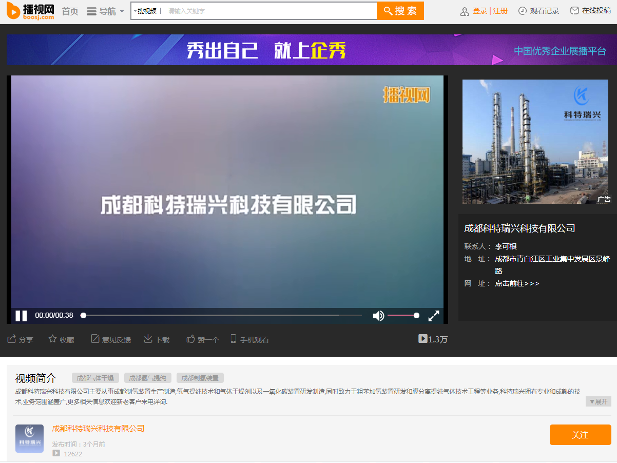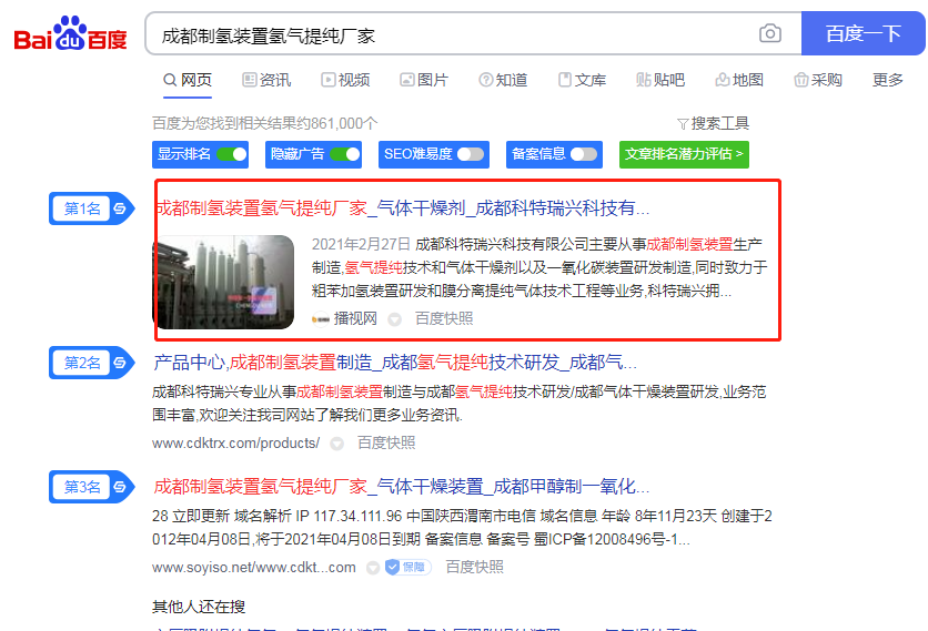 投放1條視頻,百度效果次數6條,成都氫氣提純技術、成都氫氣提純、成都氣體干燥劑等詞均已在百度展現,讓潛在客戶能輕松實現對企業核心競爭優勢的*了解。