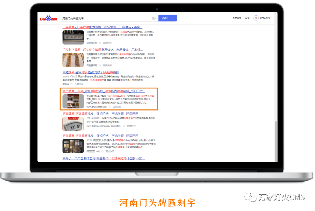 雕刻企業:網站上線兩周收錄排名,萬家燈火幫我解決了大難題!